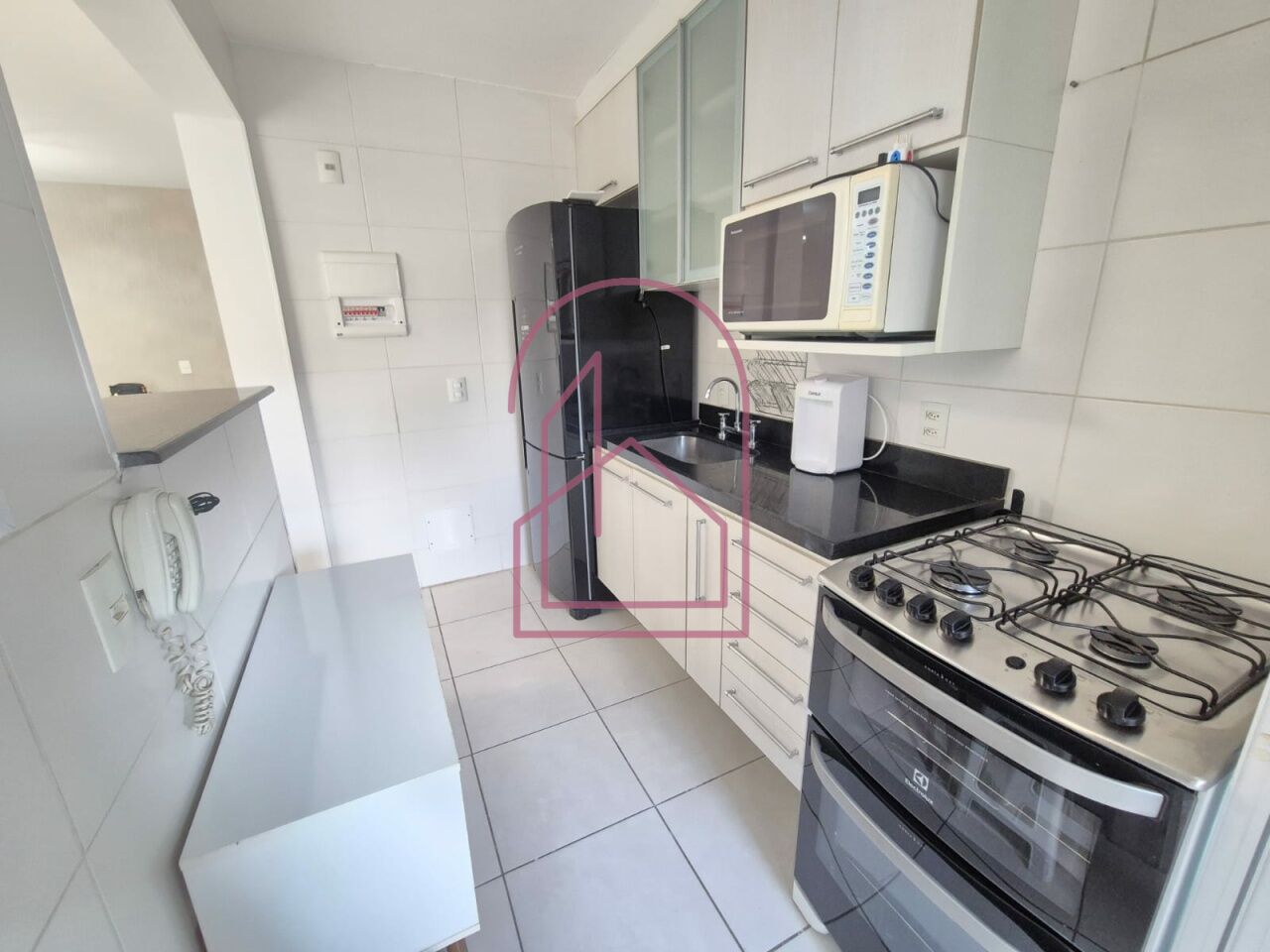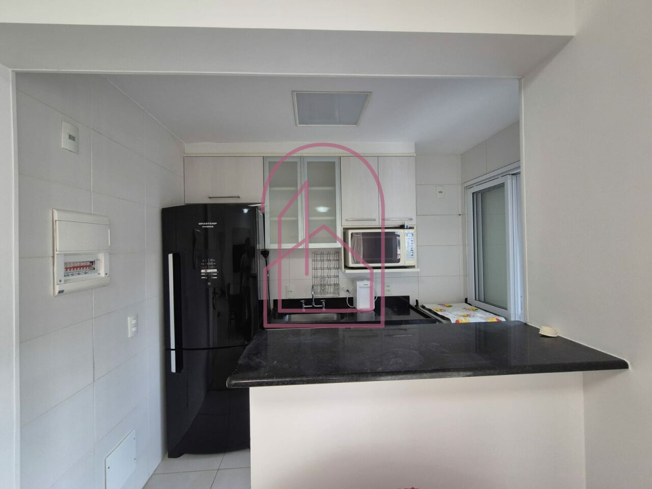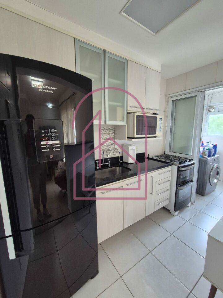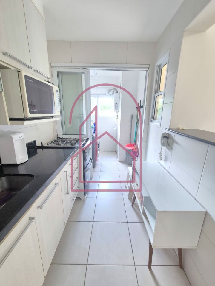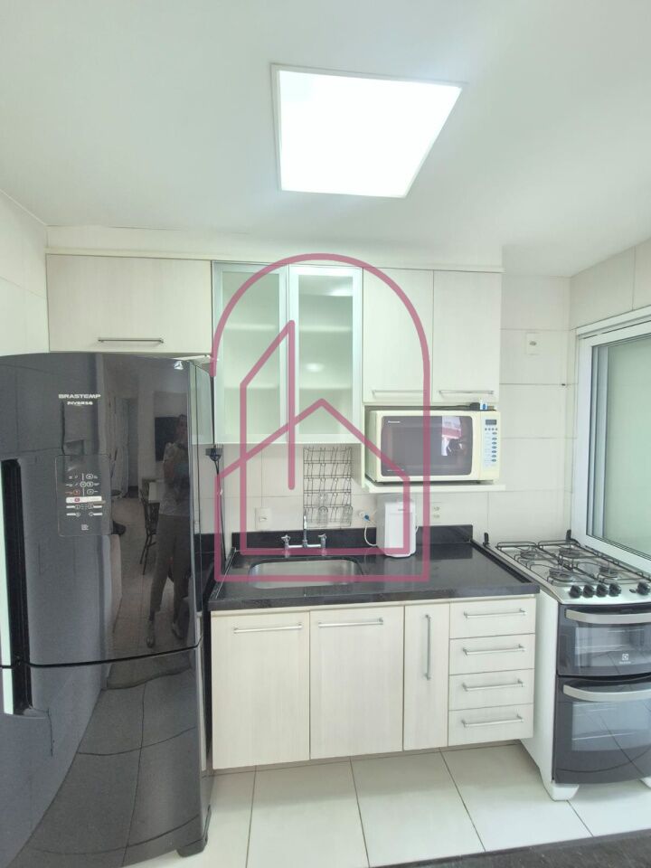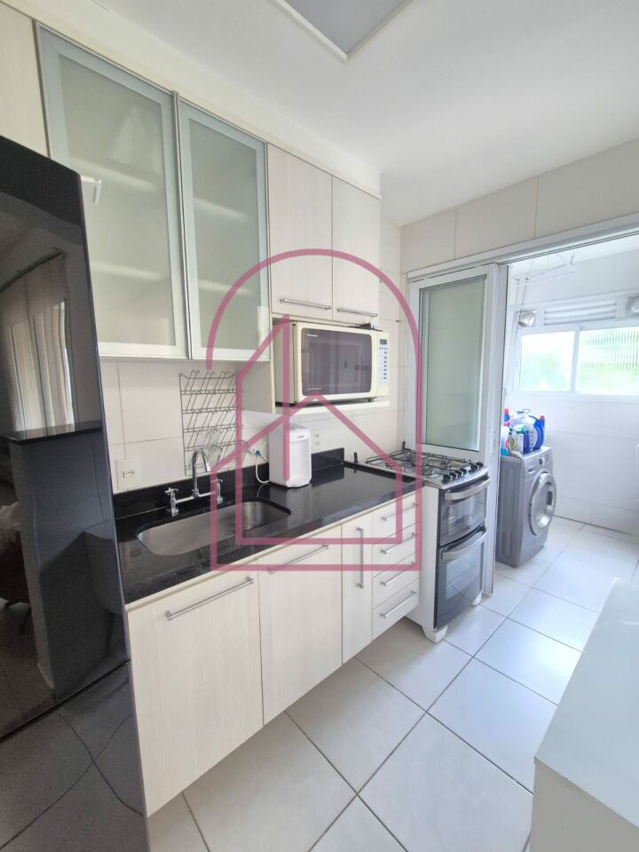 O apartamento está totalmente mobiliado e equipado com eletrodomésticos, pronto para morar. A cozinha americana é moderna, com armários, equipada com geladeira, micro-ondas, exaustor, forno e fogão. A lavanderia já possui aquecedor e máquina lava e seca.