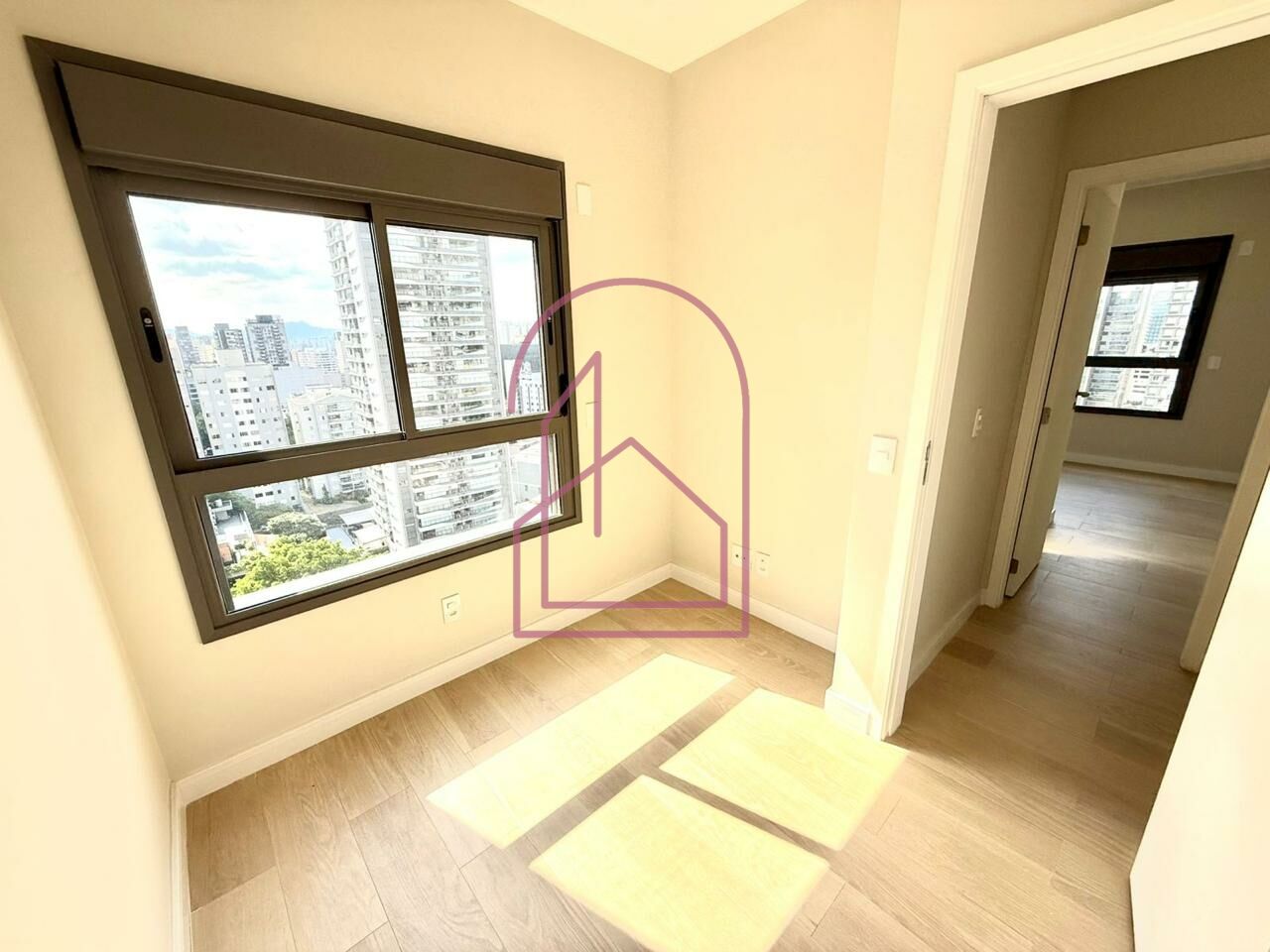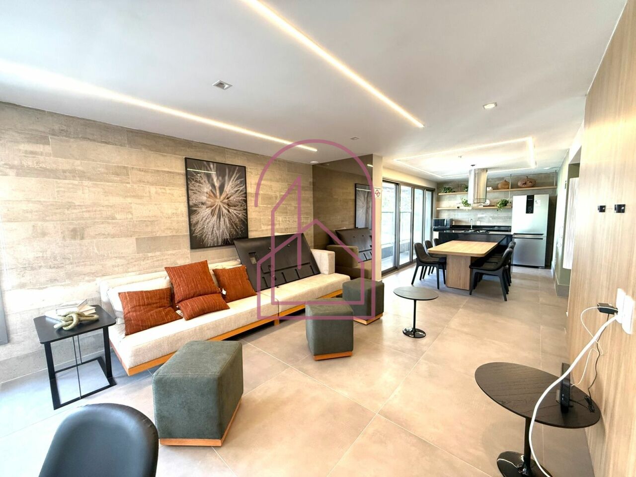 São dois dormitórios, sendo uma suíte com armários planejados de ótima qualidade. Os quartos contam com marcenaria sob medida, trazendo funcionalidade e organização. A sala apresenta acabamentos diferenciados em cerâmica, criando um ambiente contemporâneo e sofisticado.