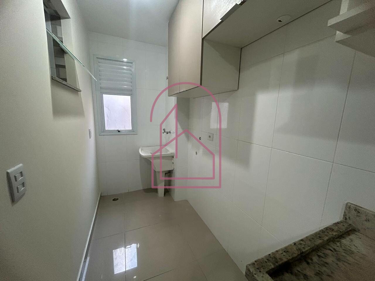 A área de serviço também conta com armários planejados, e o banheiro é completo, com gabinete e box de vidro, oferecendo conforto e ótimo acabamento.
